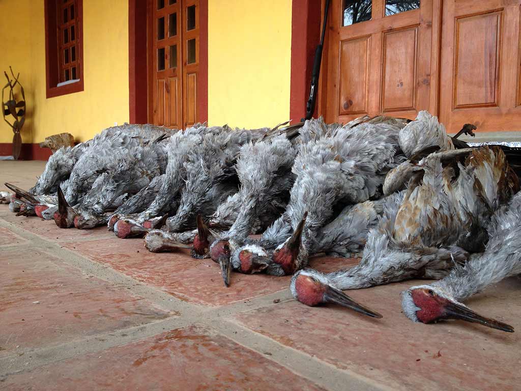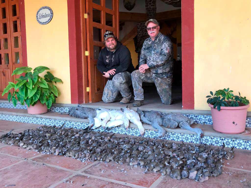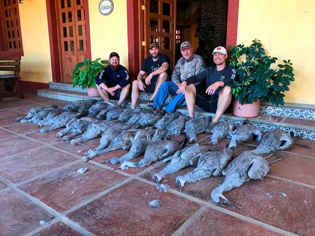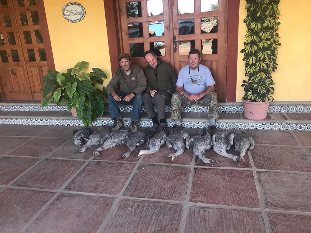 The privileged location between roosting cover, grain fields and water supply of our Hacienda ranch in the state of Zacatecas, Mexico, provide us with the ideal situation for a fantastic dove, quail, ducks, sandhill cranes and geese combo hunt. The proximity to the hunting grounds make most of our drives for dove and quail under 30 minutes and from 45 to 90 minutes for the waterfowl action. Depending on the size and preferences of the group we can combine all this species in any of our 3 to 5 day hunts.